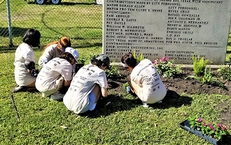 After several years of cancelation due to COVID, the Nassau Bay Beautification Day was conducted on Saturday, 26 March under ideal weather conditions. The event was organized by Becky Kadel/President of the Nassau Bay Garden Club with support by many Club members. Publicity was provided by the City of Nassau Bay and Keep Nassau Bay Beautiful. CANBE and other sponsors provided free T-shirts. Public Works ordered and delivered plants and mulch for the garden areas and supported the event.